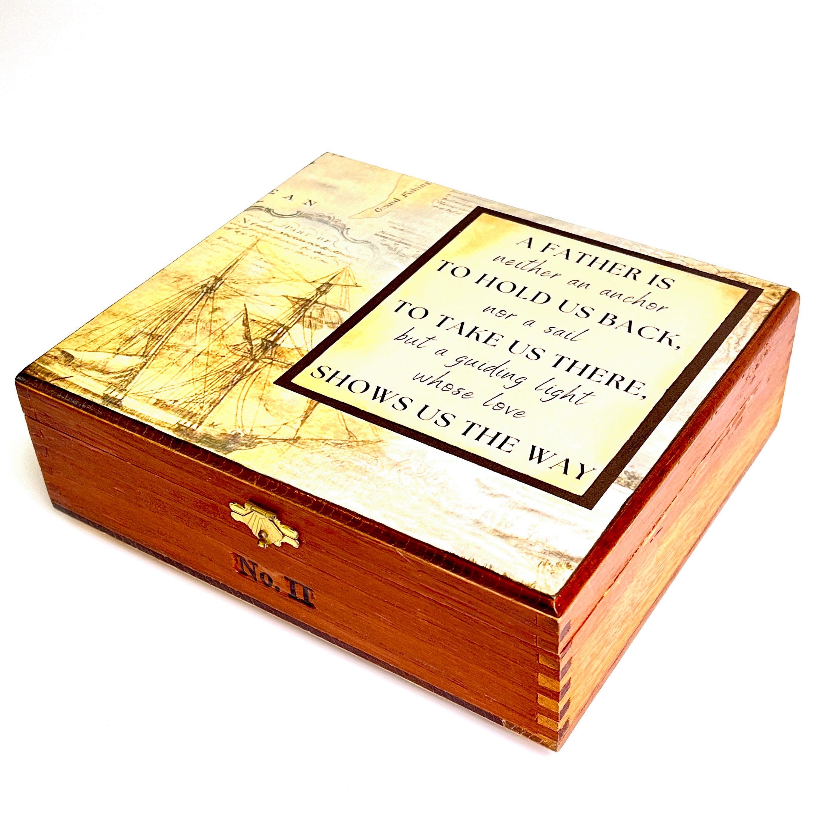 Vintage Nautical Themed Wood Cigar Box: Inspirational Father Quote, Antique Ship Theme Desk Valet