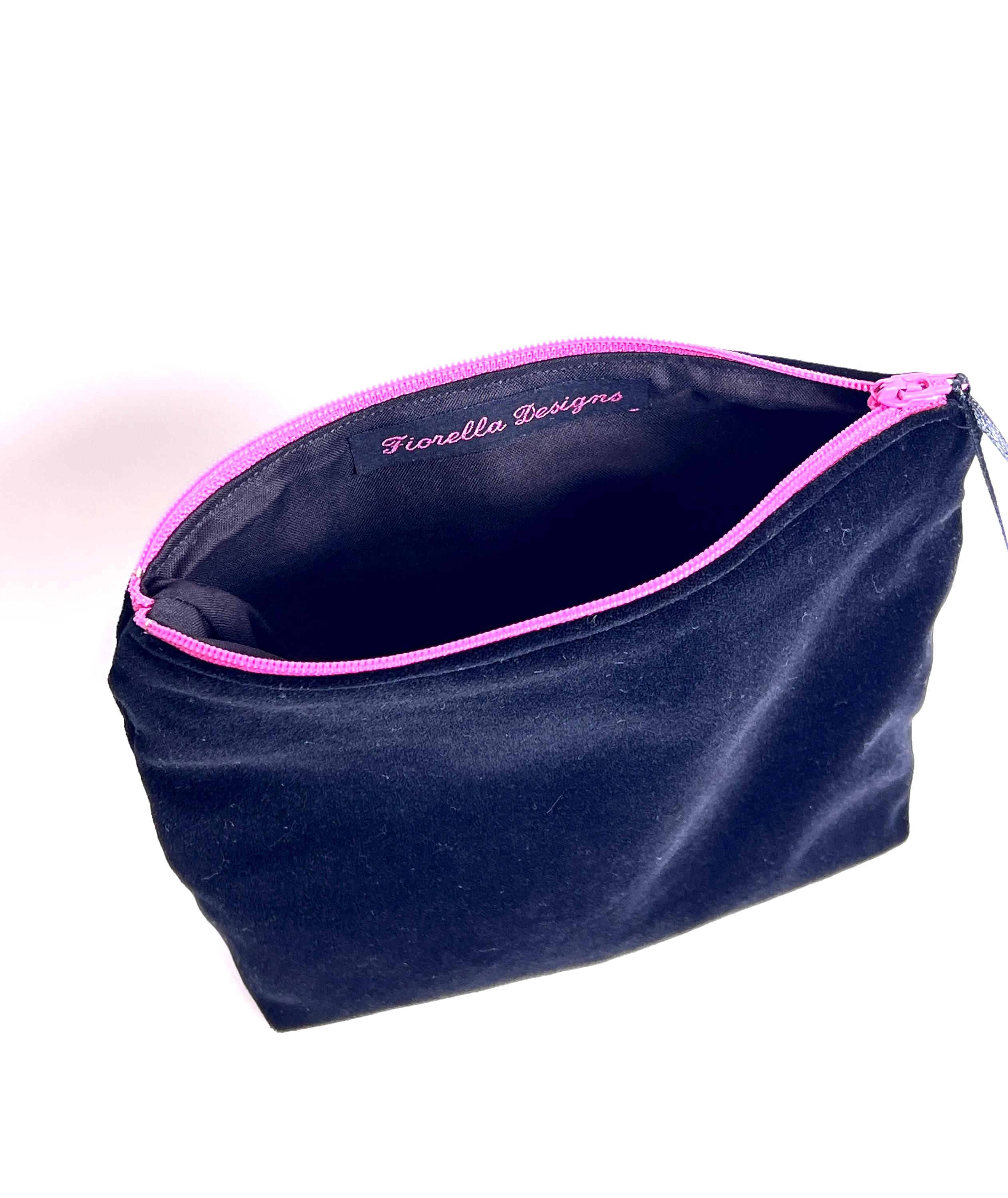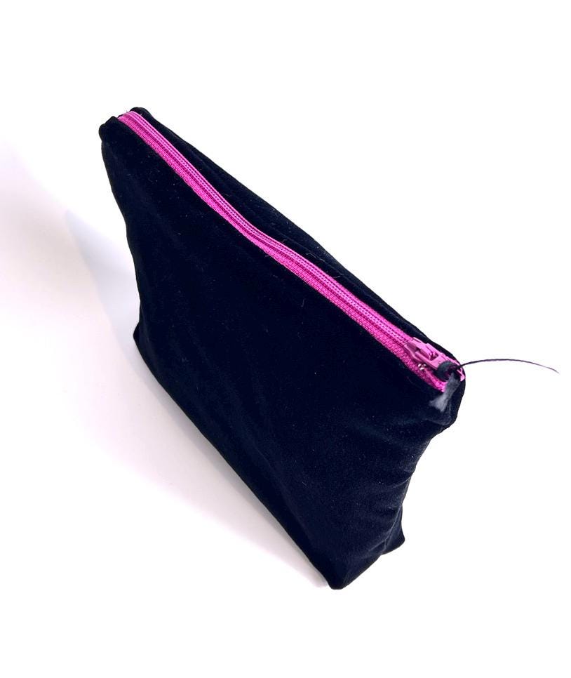 Black Velvet Zipper Pouch, Cosmetic Bag, Small Clutch Purse