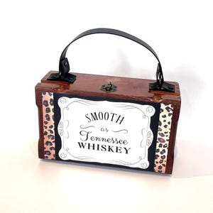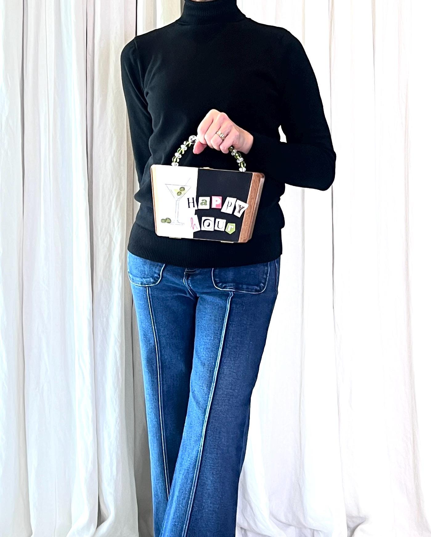 Martini Cocktail Handbag, Happy Hour Purse, Black & White Upcycled Wood Cigar Box Purse with Beaded Handle, Party Fashion