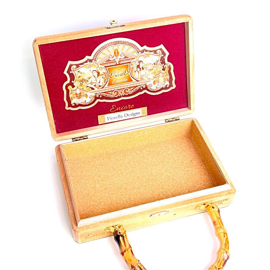 Summer Cocktails Purse, Tropical Fruit Handbag, Bamboo Handle, Wood Cigar Box Purse